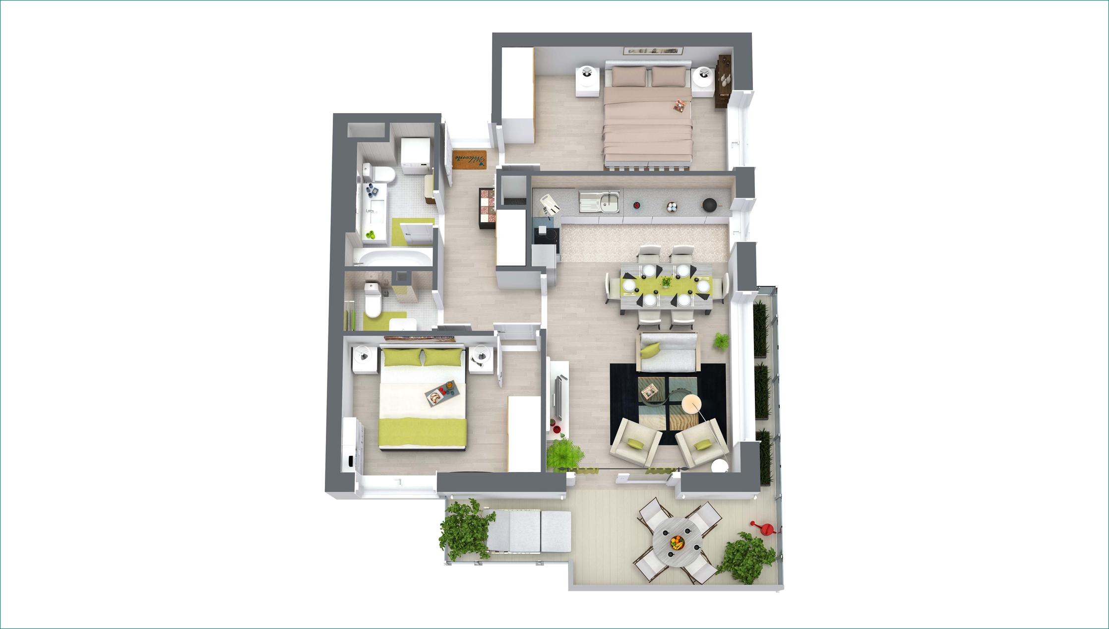 Egyénre szabható, tágas lakások, hatalmas teraszokkal.