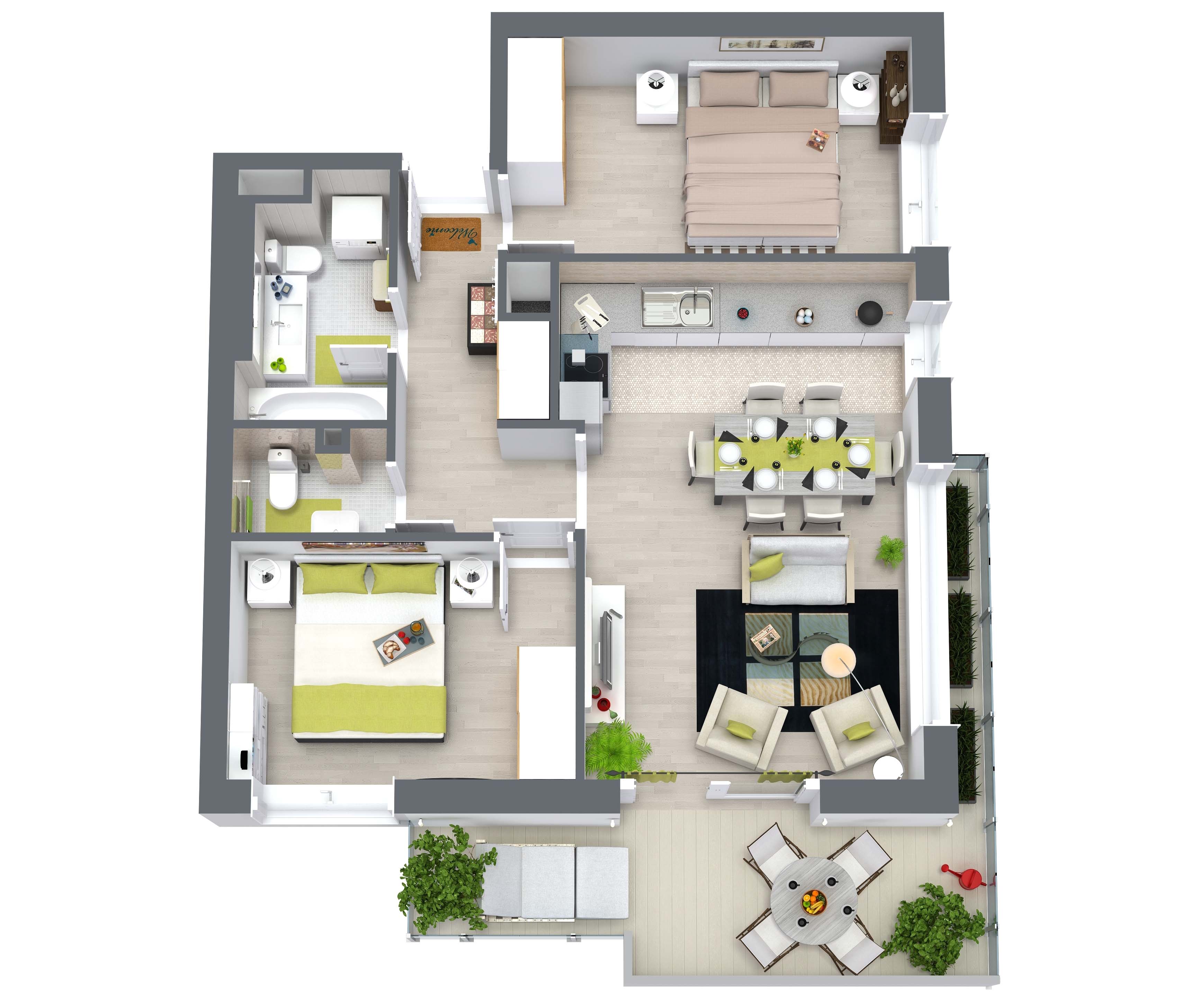Egyénre szabható, tágas lakások, hatalmas teraszokkal.